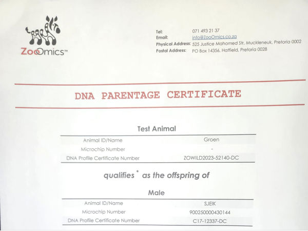 | Comment | : DNA approved son of Sheik with lots of potential. This bull was running in an extensive environment for most of his life with no feeding during extended drought periods. Capped on 2023/07/12. Perfect horn shape with large body. Sheik produced lots of cows above 44" and bulls above 45" on Skietfontein. |